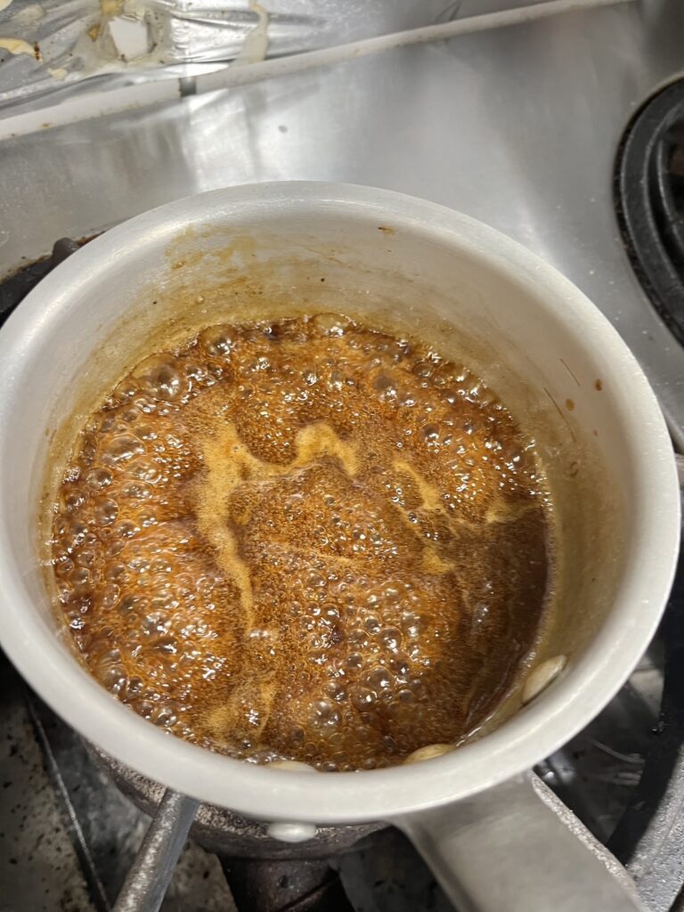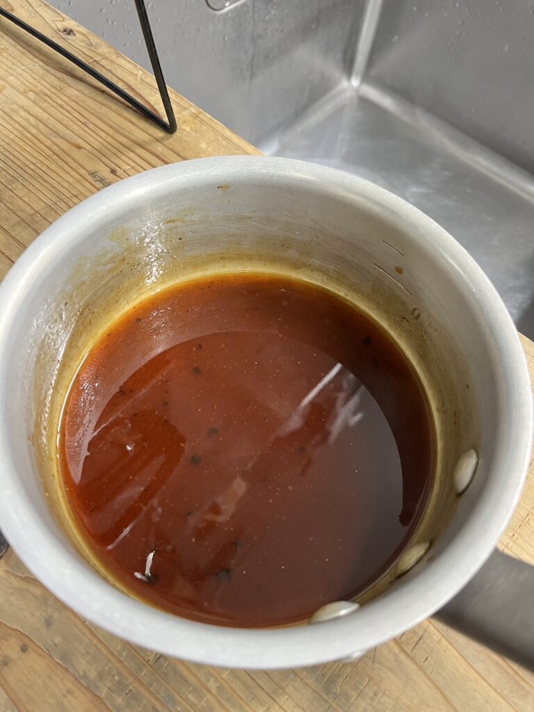 2.みりんを鍋に入れ、火にかけ酒を飛ばします。