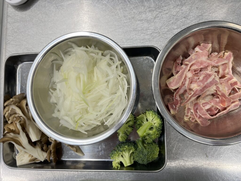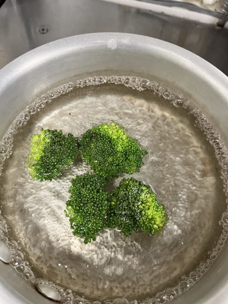 4. あらかじめ、ブロッコリーを塩ゆでして置いときます。